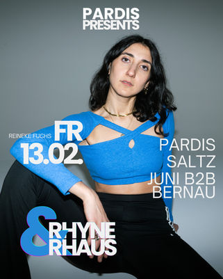 Heute steht sie als DJ hinter den Decks und teilt ihre Leidenschaft mit Menschen auf der Tanzfläche. PARDIS lebt in Köln-Ehrenfeld und ist Teil einer neuen Generation von Künstlerinnen, die Musik als Begegnung sieht und stets weiterentwickelt. Ihre Sets entstehen aus Momenten und Intuition. Die Härte, die ein treibendes Techno-Seit hier und da benötigt, fühlt sich nicht düster, sondern animierend an. Anfang 2026 kreiert Pardis gemeinsam mit ihren Partnern Tom Weecks und Deborah Salamon die erste eigene Veranstaltung "Rhyne&Rhaus". Als Kuratorin steht sie hinter dem musikalischen Konzept und der Auswahl der DJs.